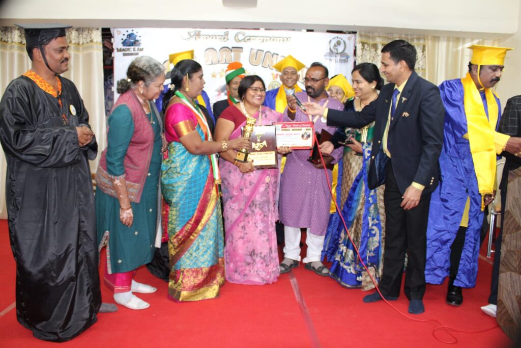धमतरी — बिलासा साहित्य शिक्षण संस्थान पंजीकृत राष्ट्रीय अध्यक्ष एवं छत्तीसगढ़ के वरिष्ठ साहित्यकार धमतरी (भखारा) निवासी डॉ माधुरी डड़सेना “मुदिता” जी शिक्षक का उनकी साहित्य कृति “माधुरी मार्तण्ड” पर मैजिक बुक ऑफ वर्ल्ड रिकॉर्ड पर फरीदाबाद में सम्मानित किया गया। उनके इस महा ग्रंथ पर 1165 नवीन प्रस्तारित सवैया हैं। ज्ञात हो कि अब तक मात्र 12 सवैया छंद साहित्य में उपलब्ध हैं। लेकिन छंदाचार्य डॉ. रामनाथ साहू “ननकी” जी ने नये सवैये का प्रस्तार किया है। इन 1165 सवैया पर मुदिता जी ने अपनी लेखनी चला कर अभूतपूर्व उल्लेखनीय कार्य किया है। ‘माधुरी मार्तण्ड’ के द्वारा पूरे छंद साहित्य जगत में सवैया की संख्या में अभिवृद्धि हुई है। यह विश्व कीर्तिमान मैजिक बुक आफ आर्ट युनिवर्सिटी फरीदाबाद के भव्य आयोजन में 8 दिसंबर को यह सम्मान प्राप्त हुआ। इस अवसर पर बिलासा छंद महालय के संस्थापक, छंदाचार्य डॉ. रामनाथ साहू “ननकी” , कोषाध्यक्ष सपना दत्ता सुहासिनी, इंद्राणी साहू ‘साँची’ , कन्हैया साहू ‘अमित’, छंद साधिका शांति बचलस, कमलेश्वर पटेल इत्यादि उपस्थित थे। मैजिक एंड आर्ट यूनिवर्सिटी का यह आयोजन दशमेश प्लाजा भवन फरीदाबाद में अति भव्यता से संपन्न हुआ। इस कार्यक्रम के मुख्य अतिथि डॉ रामावतार शर्मा एडवोकेट सुप्रीम कोर्ट , विशिष्ट अतिथि फिल्म महानायक एवं निदेशक डॉ. विजय कुमार, डॉ. अभिजीत राय चौधरी डायरेक्टर अकैडमी आफ आर्ट यूनिवर्सिटी गोल्ड मेडलिस्ट मैजिसियन डॉ सी पी यादव अध्यक्ष मैजिक बुक ऑफ रिकॉर्ड की गरिमा में उपस्थित थे। सभी मित्रों, परिवार जनों, संपूर्ण बिलासा साहित्य शिक्षण संस्थान में हर्ष की लहर है। बिलासा छंद महालय परिवार ने इस उपलब्धि पर बहुत बहुत बधाइयाँ प्रेषित की है।