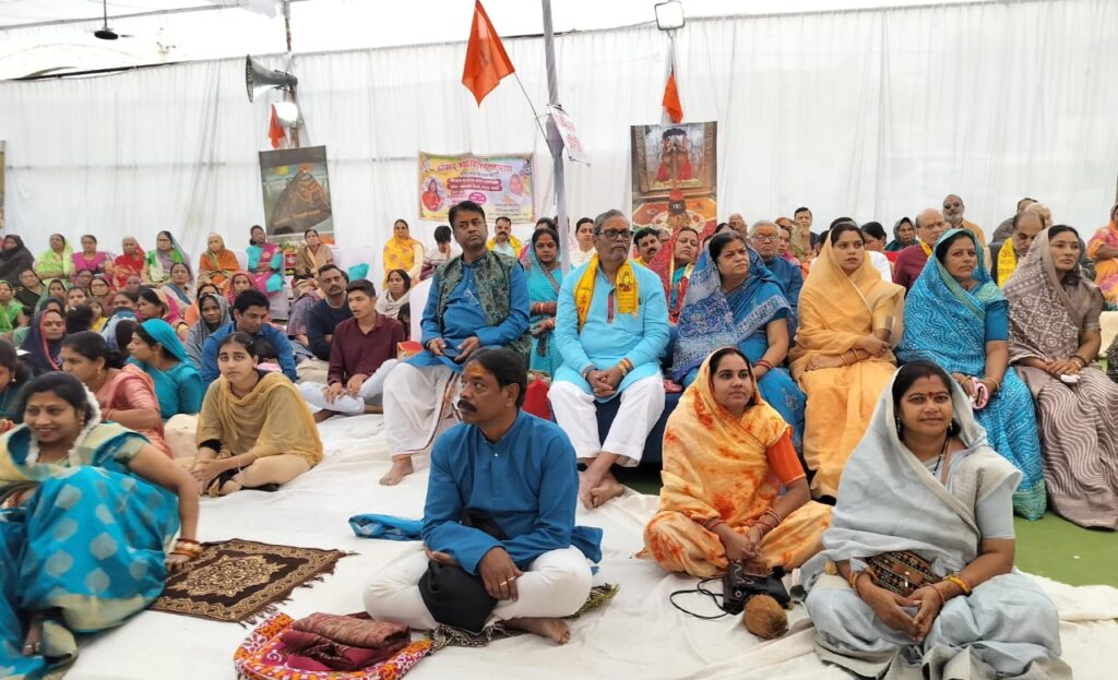 धमतरी गौशाला मैदान में आयोजित शिवमहापुराण कथा श्रवण करने पहुंची पूर्व विधायक रंजना साहू, व्यासपीठ का लिए आशीर्वाद