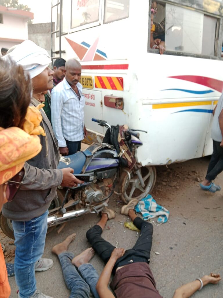 खड़ी बस में जा टकराये बाइक सवार, एक की मौत, दूसरा गंभीर,नगर पंचायत आमदी की घटना