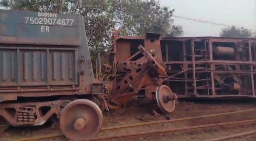 बीएसपी आयरन ओर ले जाने वाली मालगाड़ी पटरी से उतरी, दो डिब्बे ट्रैक से हुए बाहर