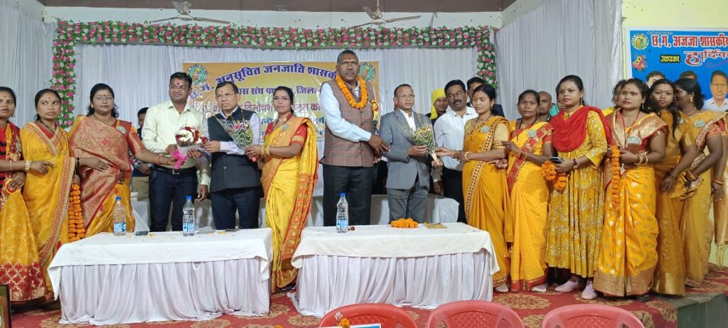 धमतरी – छत्तीसगढ़ अनुसूचित जनजाति शासकीय सेवक विकास संघ पथरिया के वार्षिक कैलेंडर 2024 का विमोचन एवं सम्मेलन मंगल भवन पथरिया जिला मुंगेली में संपन्न हुआ। कार्यक्रम के मुख्य अतिथि के डी कुंजाम (आईएएस) आयुक्त बिलासपुर संभाग, अध्यक्षता बी आर ठाकुर, एसडीएम पथरिया, अति विशिष्ट अतिथि आर एन ध्रुव प्रदेश अध्यक्ष अनुसूचित जनजाति शासकीय सेवक विकास संघ छत्तीसगढ़, विशिष्ट अतिथि आई.पी. मरावी, डॉ. देवेंद्र सिंह पैकरा सीएचएमओ मुंगेली, डॉ.आनंद सिंह मांझी, डॉ. शिवपाल सिंह सिदार, प्रदीप कुमार प्रधान मुख्य कार्यपालन अधिकारी पथरिया, श्रीमती प्रकृति ध्रुव तहसीलदार, जिलाध्यक्ष बिलासपुर आर.सी. ध्रुव,जिलाध्यक्ष मुंगेली अकत राम ध्रुव, जिला उपाध्यक्ष एन आर ध्रुव थे। इस अवसर पर मुख्य अतिथि कुंजाम ने कहा कि अपनी विशिष्ट संस्कृति को संरक्षित करते हुए शिक्षा को अपनाकर समाज को आगे आना होगा। विशिष्ट अतिथि आर एन ध्रुव कहा कि फर्जी जाति प्रमाण पत्र धारियों के खिलाफ कार्यवाही नहीं होने, बैकलॉग पदों पर भर्ती नहीं होने, पदोन्नति में आरक्षण नहीं मिलने से समाज को बड़ा नुकसान हुआ है। छत्तीसगढ़ में आदिवासी समाज के मुख्यमंत्री बनने से समाज को संवैधानिक हितों की रक्षा होने की आस जगी है। कार्यक्रम का संचालन ब्लॉक अध्यक्ष शैलेंद्र कुमार ध्रुव द्वारा किया गया।कार्यक्रम को संरक्षक आर के नागेश्वर, जे एस पैकरा, लेखन ध्रुव, सरिता श्याम, सरिता मंडावी ने भी संबोधित किया।