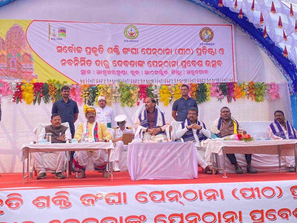 धमतरी — गोंडवाना गोंड महासभा उड़ीसा द्वारा चारों तरफ पहाड़ियों से गिरा हुआ वनों से आच्छादित अनगुल जिला के ग्राम अंबरसरमुंडा में 35 एकड़ जमीन के ऊपर स्थित विराट चट्टान के ऊपर 200 फीट की ऊंचाई में करोड़ों की लागत से निर्मित पूनाल जंगो पेनठाना स्थापना कार्यक्रम उड़ीसा के महामहिम राज्यपाल रघुवर दास के मुख्य आतिथ्य, धर्मेंद्र प्रधान केंद्रीय मंत्री शिक्षा एवं कौशल विकास भारत सरकार,महासभा के संगठन मंत्री गुरुचरण नायक पूर्व विधायक झारखंड, रमेश राय स्थानीय विधायक उड़ीसा रवि नारायण नायक पूर्व विधायक, आर एन ध्रुव राष्ट्रीय सचिव प्रशासन गोंडवाना गोंड महासभा, सूरज प्रसाद शाह राष्ट्रीय उपाध्यक्ष पश्चिम बंगाल के विशेष उपस्थिति में संपन्न हुआ। इस अवसर पर महामहिम राज्यपाल ने कहा कि यह भव्य बड़ादेव पेन ठाना इस क्षेत्र में बड़ा आस्था का केंद्र के रूप में सुविख्यात होगा। भविष्य में लोग दूर-दूर से दर्शन हेतु यहां आएंगे। केंद्रीय मंत्री धर्मेंद्र प्रधान ने कहा कि समाज को शिक्षा को अपनाना होगा। आभार प्रदर्शन करते हुए आर एन ध्रुव ने कहा कि समाज और सरकार के सहयोग से विशाल क्षेत्र में निर्मित बड़ादेव पेन ठाना पूरे देश के गोंडियन जन के लिए मॉडल होगा। भव्य बड़ादेव ठाना स्थापना करने वाले गोंडवाना गोंड महासभा के प्रदेश अध्यक्ष महेंद्र नायक , महासचिव प्यारी मोहन नायक एवं उड़ीसा की पूरी टीम को अखिल भारतीय गोंडवाना गोंड महासभा द्वारा इस महान कार्य के लिए हार्दिक शुभकामनाएं प्रेषित किया गया। इस अवसर पर गोंडी लिपि के उद्वाचक प्रकाश सलामे महाराष्ट्र, गोंडी धर्माचार्य के पी प्रधान, पश्चिम बंगाल के अध्यक्ष मैनेजर शाह,जिलाध्यक्ष एस.पी. ध्रुव महासमुंद सहित पूरे देश भर से हजारों की तादाद में गोंडियनजन स्थापना अवसर पर उपस्थित थे।