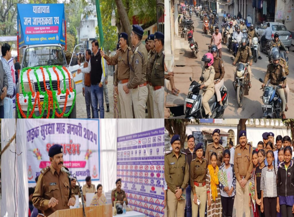 धमतरी जिले में 35 वो राष्ट्रीय सड़क सुरक्षा सप्ताह का शुभारंभ शुक्रवार 15 जनवरी 2024 को पुलिस अधीक्षक धमतरी प्रशांत ठाकुर (भा.पु.से.) के द्वारा किया गया।