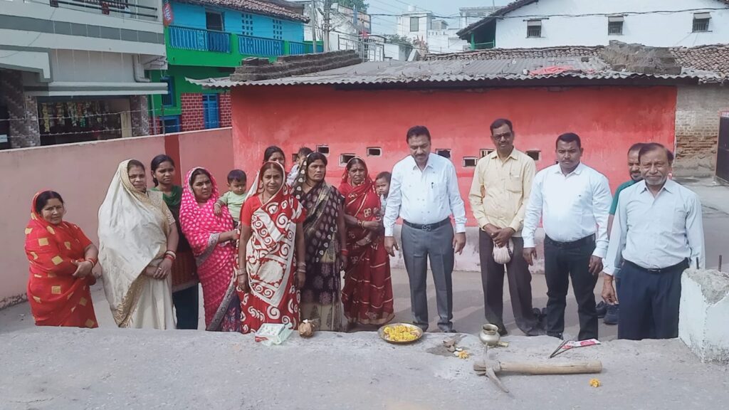 शीतला पारा वार्ड सामुदायिक भवन मे अतिरिक्त कक्ष निर्माण कार्य का भूमि पूजन महापौर विजय देवांगन की उपस्थिति में नारी शक्तियों द्वारा किया गया