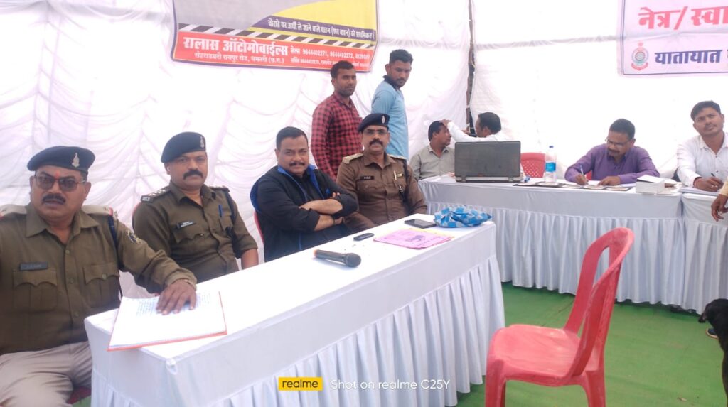 सड़क सुरक्षा को बढ़ावा देने नया कृषि मंडी श्यामतराई के पास व्यवसायिक वाहन चालकों का स्वास्थय / नेत्र शिविर आयोजन किया गया जिसमें स्वास्थय विभाग के टीम द्वारा 122 व्यवसायिक वाहन चालकों का स्वास्थय / नेत्र परीक्षण किया गया। जिसमें 05 वाहन चालकों को कलर ब्लाईंडेड समस्या होने पर चश्मा लगाकर वाहन चालन करने समझाईश दी गई, साथ ही शिविर में उपस्थित उप पुलिस अधीक्षक मणीशंकर चन्द्रा द्वारा वाहन चालकों को यातायात नियमों का प्रशिक्षण देकर यातायात नियमों से संबधित पाम्पलेट वितरण किया गया।