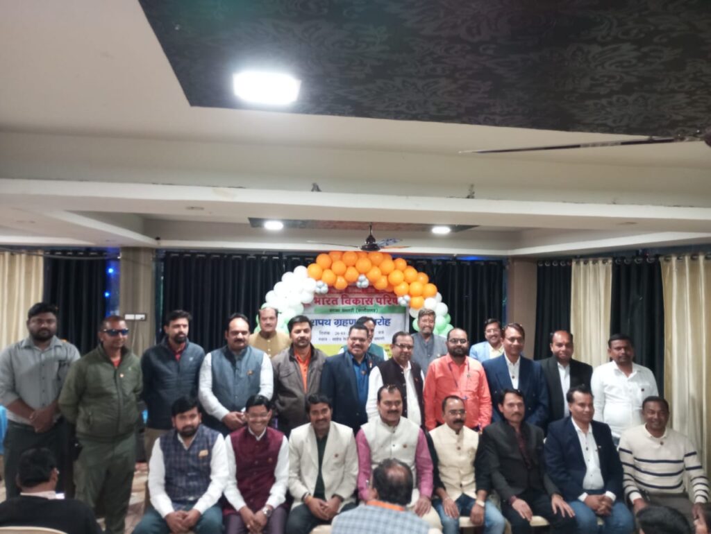 लगभग 60 वर्ष पुराने भारत विकास परिषद की देशभर में 14000 से अधिक इकाई गठित है।छत्तीसगढ़ में 2001 से इसकी शुरुआत हुई थी। जहां पर 13 शाखाएं संचालित थी। 14वीं शाखा धमतरी का गठन किया गया। इसके सभी पदाधिकारी एवं सदस्यों का शपथ ग्रहण समारोह शुक्रवार को निजी होटल में रखा गया था। कार्यक्रम में भारत विकास परिषद के अध्यक्ष सोमेन गांगुली, पास्ट प्रेसिडेंट रायपुर एसएन सिंह, संगठन मंत्री भारत विकास परिषद सुरेंद्र सुराना और सतीश मिश्रा बतौर अतिथि शामिल हुए। दीप प्रज्वलन के बाद वंदे मातरम गीत के साथ कार्यक्रम का शुभारंभ हुआ। अतिथि स्वागत पश्चात चैप्टर इंचार्ज सुबोध राठी ने स्वागत भाषण दिया और किस प्रकार से धमतरी में इसकी शुरुआत हुई उसकी जानकारी दी।नए सदस्यों को सोमेन गांगुली ने शपथ दिलाई। जिसमें प्रमुख रूप से अध्यक्ष भूपेश चौधरी,उपाध्यक्ष डॉ भूपेंद्र साहू,सचिव बसंत गजेंद्र, कोष सचिव सोमन साहू,संस्कार प्रमुख विनोद पांडे,सम्पर्क प्रमुख सुरेंद्र साहू,प्रकल्प प्रभारी पवन साहू,राष्ट्रीय समूहगान लोकेश्वर साहू,भारत को जानो प्रभारी सतानंद साहू,विकलांग सहायता विभाग अनूप मिश्रा,रक्तदान नेत्रदान सेवक साहू,समग्र ग्राम विकास सुबोध राठी, गुरूतेजबहादूर बलिदान दिवस गजेंद्र पटेल,वनवासी सहायता अजय वर्मा,पर्यावरण संरक्षण हिमांशु पांडे,स्थायी प्रकल्प विभाग दिनेश साहू डॉ दिनेश नाग, टीआर सिन्हा,कमल किशोर सिन्हा तरुण भांडे,भुजेंद्र साहू,हरीश चंद्रवंशी,धनंजय मोरे भूपेंद्र टंडन शामिल थे। मुख्य अतिथि सुरेंद्र सुराणा ने एग्जीक्यूटिव बॉडी अध्यक्ष,सचिव, कोषाध्यक्ष को विशेष पिन लगाकर शपथ दिलाई। अपने अध्यक्षीय उद्बोधन में भूपेश चौधरी ने कहा कि भविष्य में जो भी दिशा निर्देश प्राप्त होंगे उन्हें यहां की इकाई द्वारा संचालित किया जाएगा। आशीर्वचन के रूप में एसएन सिंग ने भारत विकास परिषद के बारे में विस्तृत जानकारी दी।सोमेन गांगुली और सतीश मिश्रा ने भी संबोधित किया।सचिव बसंत गजेंद्र ने अंत में आभार व्यक्त किया।कार्यक्रम को संचालन उपाध्यक्ष डॉ भूपेंद्र साहू ने किया।इस दौरान चंद्रमुखी चौधरी, गंगोत्री वर्मा, रामकुमारी चौधरी, पुष्पा साहू, आकृति चौधरी, महेश्वरी साहू, रश्मि गोस्वामी,खुशी,रुचि, हर्ष गजेंद्र, पंखुड़ी गजेंद्र आदि मौजूद थे।