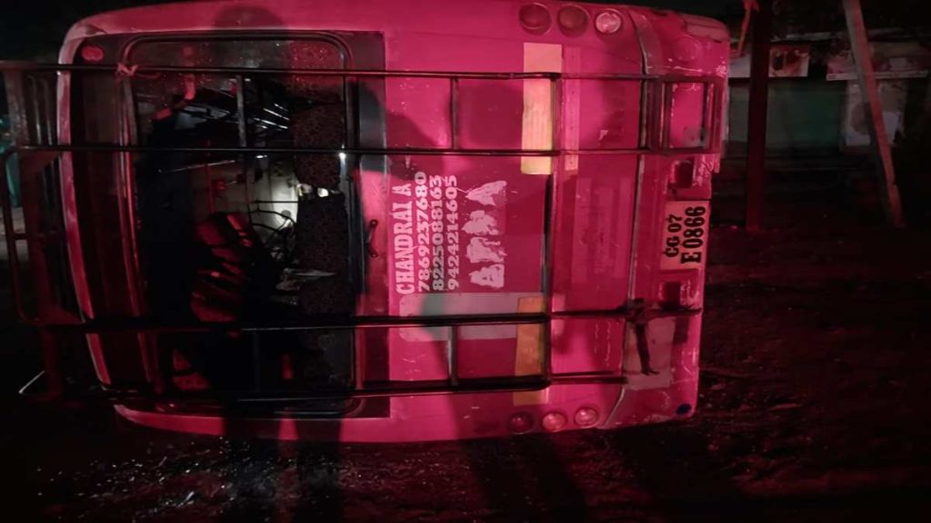 बलौदाबाजार। देर रात ग्राम सकरी में बारातियों से भरी बस पलटने से चीख पुकार मची रही। इस हादसे में दस लोग घायल हुए हैं। वहीं दो गंभीर हैं, जिन्हें रायपुर रेफर किया गया है। घटना होते ही बस में सवार लोगों सहित ग्रामीणों की मदद से सभी को गाड़ी का कांच तोड़कर बाहर निकाला गया। वहीं घायलों को तत्काल जिला चिकित्सालय भेजा गया, जहां मामूली चोट के चलते बाकी को छुट्टी दी गई एवं दो को जिला चिकित्सालय में भर्ती किया गया है। वहीं दो घायलों को रायपुर रेफर किया गया है।