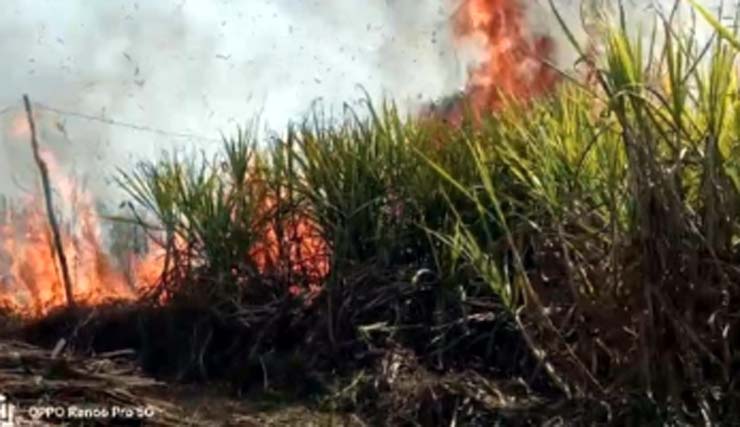 गन्ने के खेत में लगी आग, 40 एकड़ से ज्यादा में लगी फसल बर्बाद