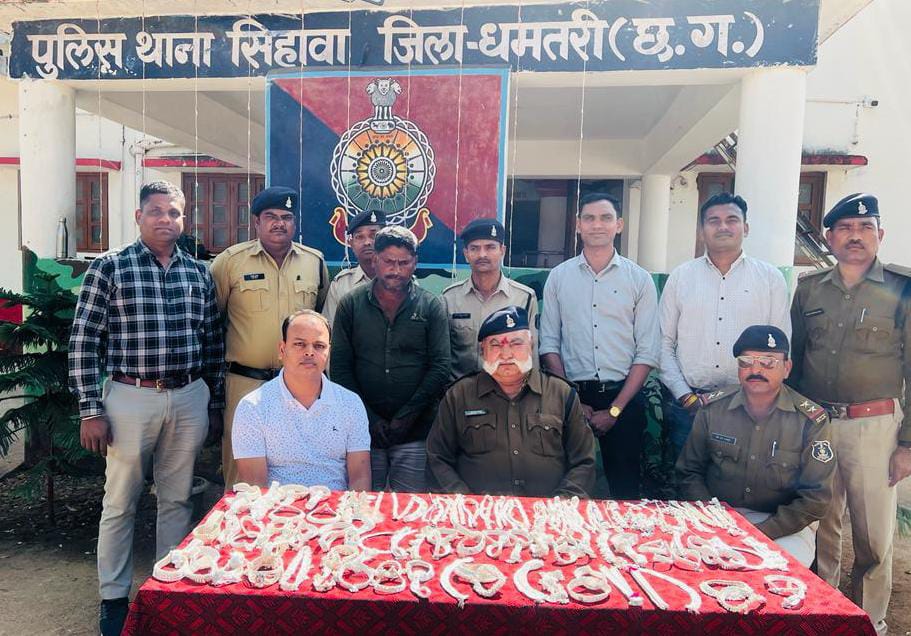 धमतरी – प्रार्थी चिराग गोलछा पिता प्रकाश गोलछा निवासी बिरगुड़ी ने थाना मे रिपोर्ट दर्ज कराया कि 18 जनवरी को ग्राम बेलरगांव बाजार में सोने चांदी की दुकान लगाया था जो कि 05:50 बजे पर अपनी दुकान बंद कर चांदी की जेवरात को एक टिना की पेटी मे बंद कर बाजार दुकान मे ही सामान रखकर बाथरूम करने चला गया जो 15 से 20 मिनट बाद वापस अपनी दुकान पर आया प्रार्थी का चांदी से भरी पेटी को कोई अज्ञात चोर चारी कर चला गया था कि जिसकी सूचना प्रार्थी द्वारा थाना सिहावा को देने पर अपराध कमांक 13/2024 धारा 379 भादवि० कायम किया गया।