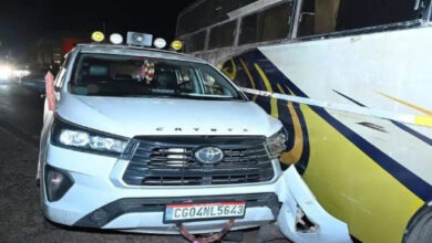 खाद्य मंत्री दयालदास बघेल के काफिले की कार को बस ने मारी टक्कर, कोई हताहत नहीं रायपुर। खाद्य मंत्री दयालदास…