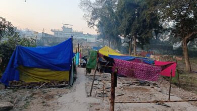 कड़कड़ाती ठंड में बेघर हुए रेलवे प्रभावितों को तिरपाल से राहत